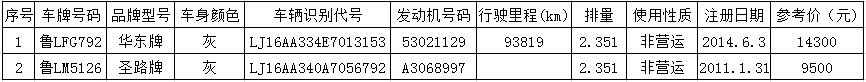5月28日日照東港農(nóng)商行華東牌、圣路牌兩輛汽車(chē)拍賣(mài)公告