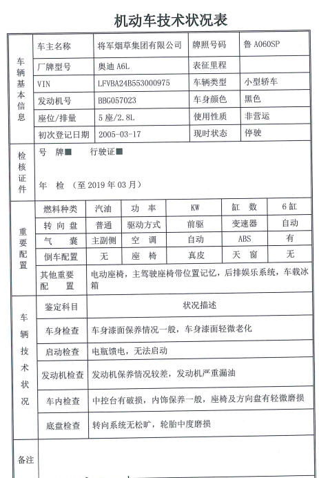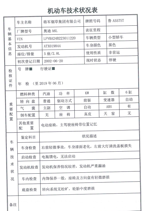 奧迪A6L兩輛(不含車牌),整體拍賣優(yōu)先,整體參考價11000元,競買保證金5000元;單輛拍賣保證金2000元/輛。