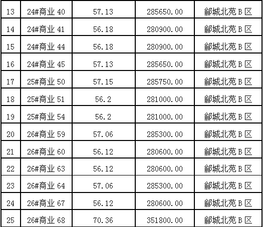 1、夏津縣鄃城北苑商業(yè)房25間。建筑面積56.12---130.51平方米不等,參考價28.06---71.78萬元。(起拍價及單套面積詳見公司網(wǎng)站公眾號及標(biāo)的張貼公告)競買保證金3萬元/間。多賣多交。